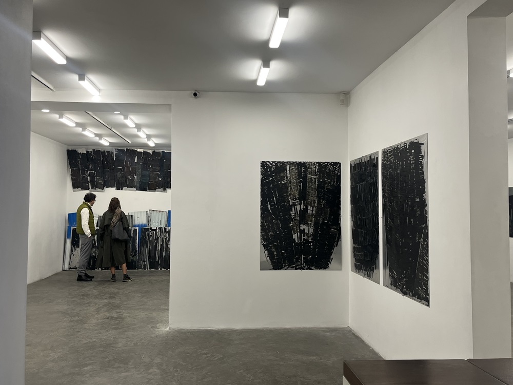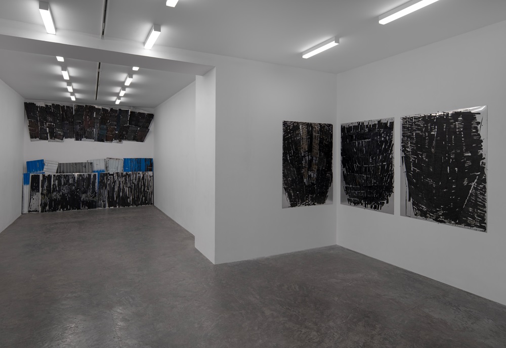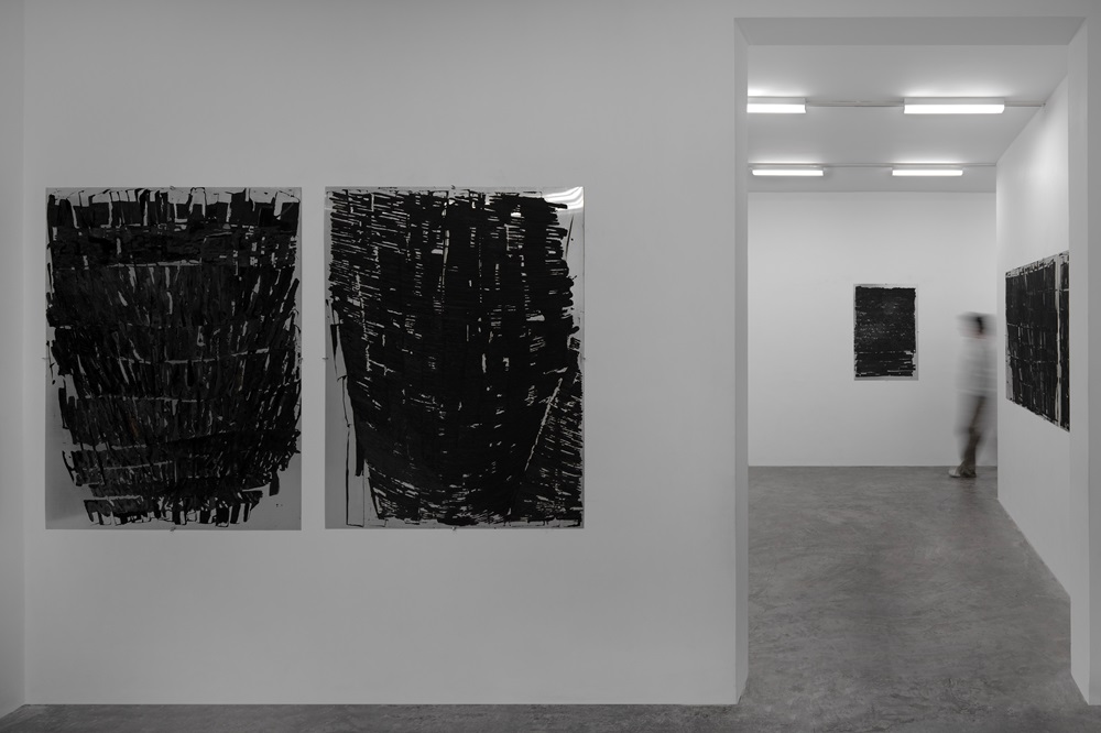 With a background in printmaking, Abdollahi remains inspired by the freely bodily process of working on copper plates—an approach grounded in repetition and erasure. This sensibility extends through the exhibition: encompassing her long-standing series exploring architectural structures and culminating in an installation designed specifically to evoke the feeling of a “place”.